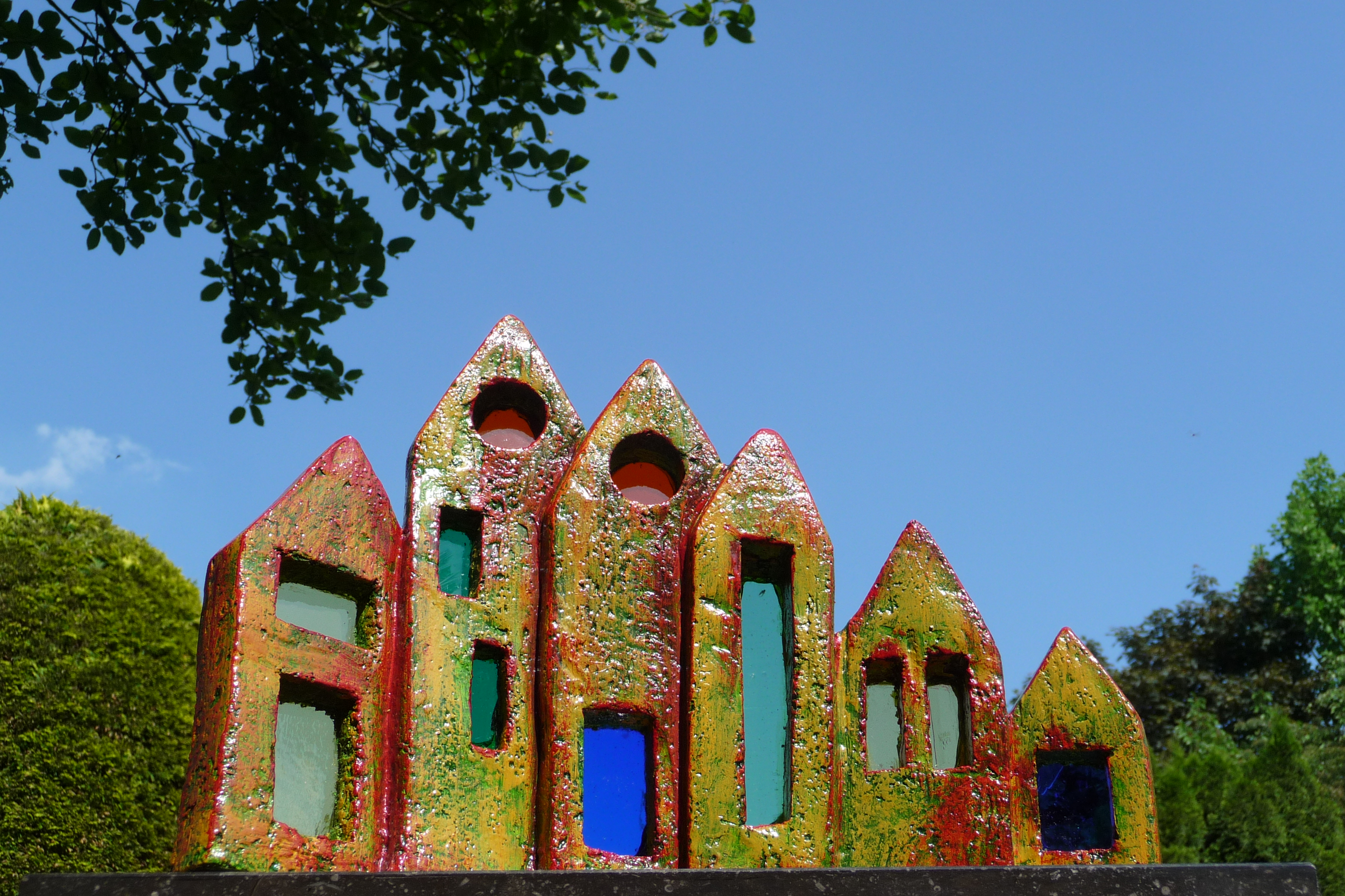 "Huisjes", object is voorzien van stukjes glas door Sjaak van Bakel.