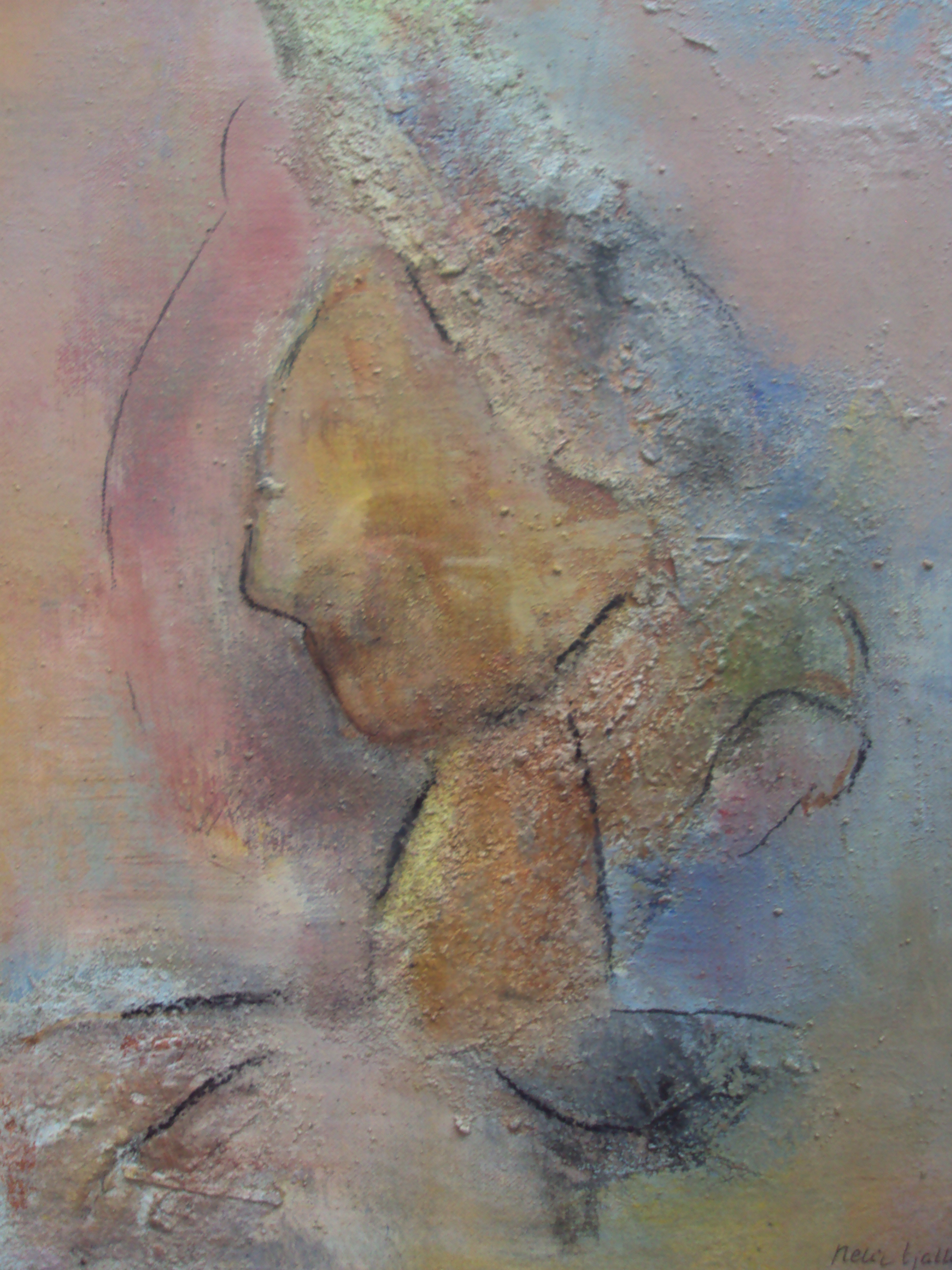 Nelie is geboren in Bergen vlakbij zee en duinen. Het licht en de zee zijn een belangrijke inspiratiebron voor haar.Zij wordt geboeid door het spel van het licht dat landschappen en voorwerpen een steeds andere kleur en glans geeft. Ook vertaalt ze haar gedichten in kleurstemmingen.Thema,s zijn beweging en verandering en deze thema,s vindt ze weer terug in de natuur. Zij werkt graag met aarde pigmenten en maakt haar verf met gesso aan . Ook zand en papier verwerkt ze in haar schilderijen.