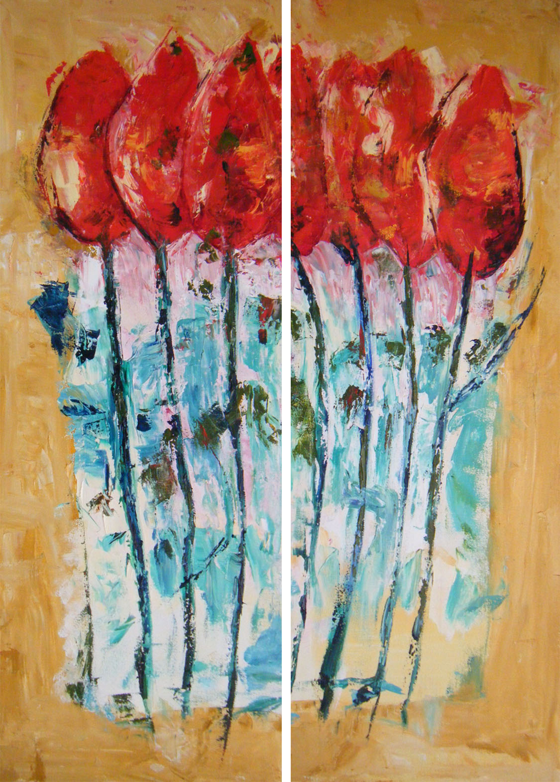 Olieverf op doek Tweeluik; 2 doeken van ieder 80 x 60 cm