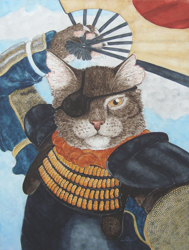 Portret Kat Aquarel Portrait Cat History Historisch Japan Date Masamune Dokuganryu Sendai