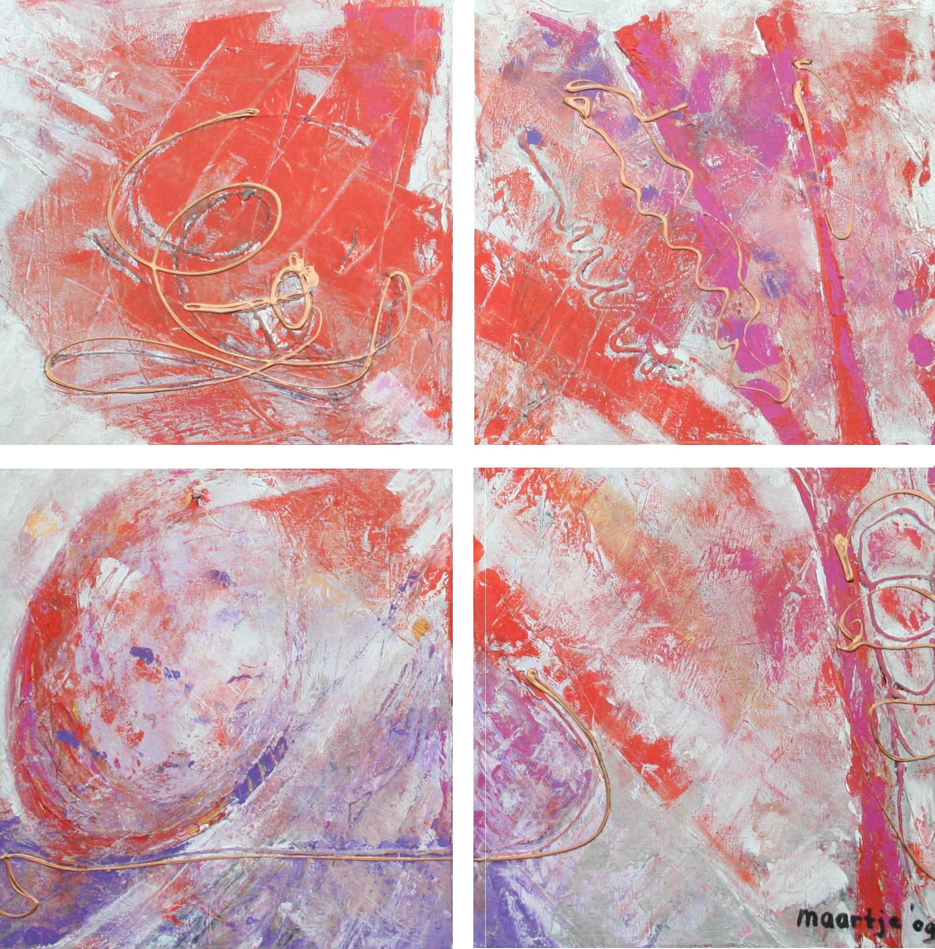 Vierluik van vier schilderijtjes van 40x40.