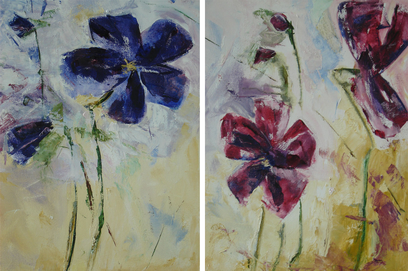 Olieverf op doek. Tweeluik; 2 doeken van ieder 40x30 cm.