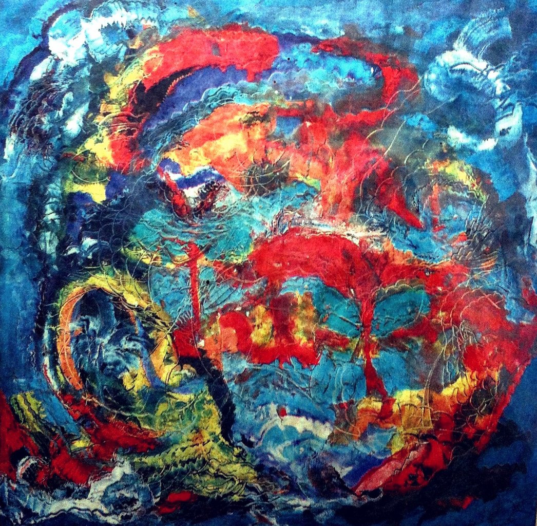 Schilderij met veel emotie..Gemaakt voor helaas overleden vriend Paul Hier wordt zijn strijd tegen een ongeneeselijke ziekte weergegeven....