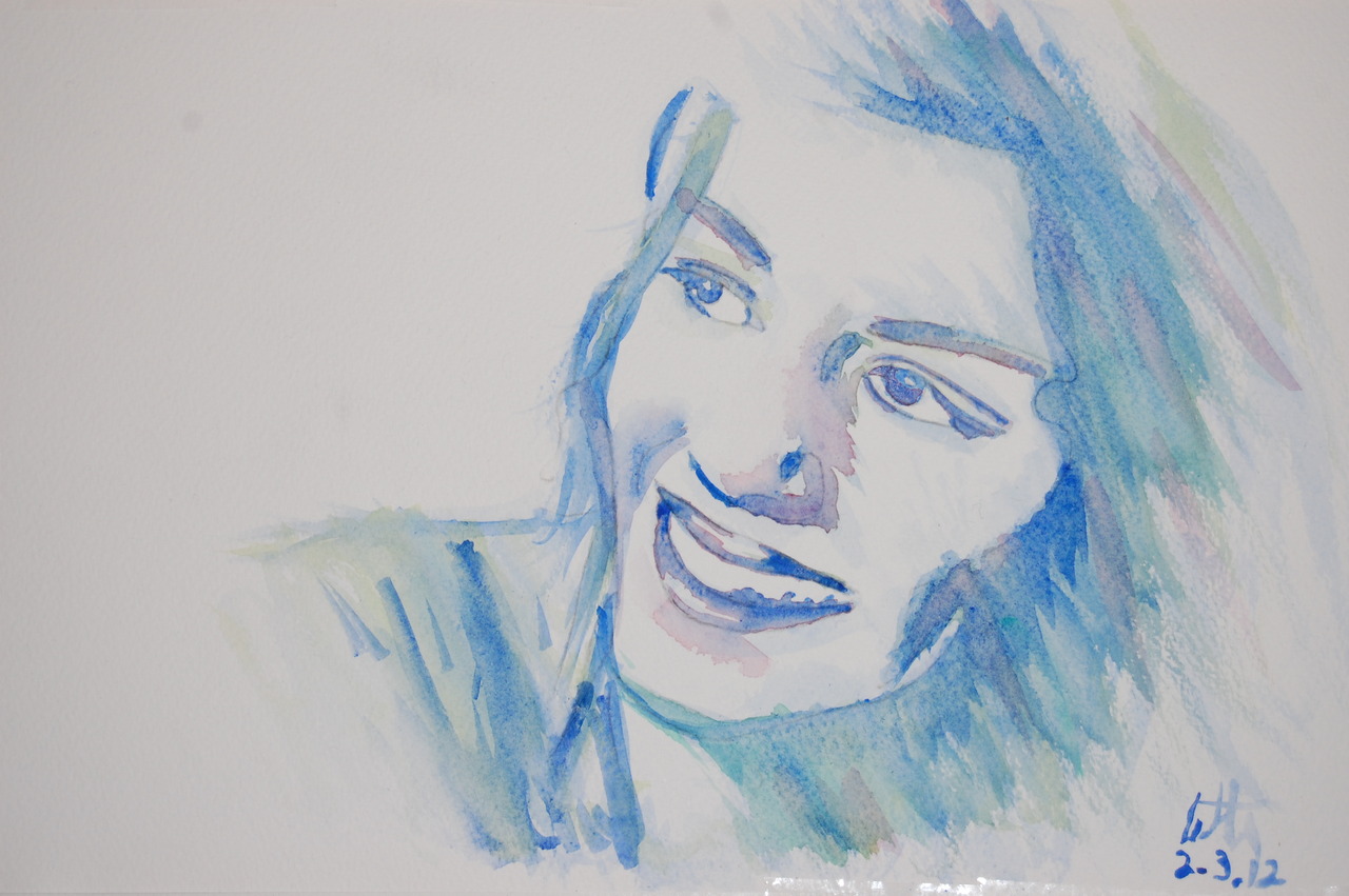 snelle aquarel van een portret van Audrey Tautou.