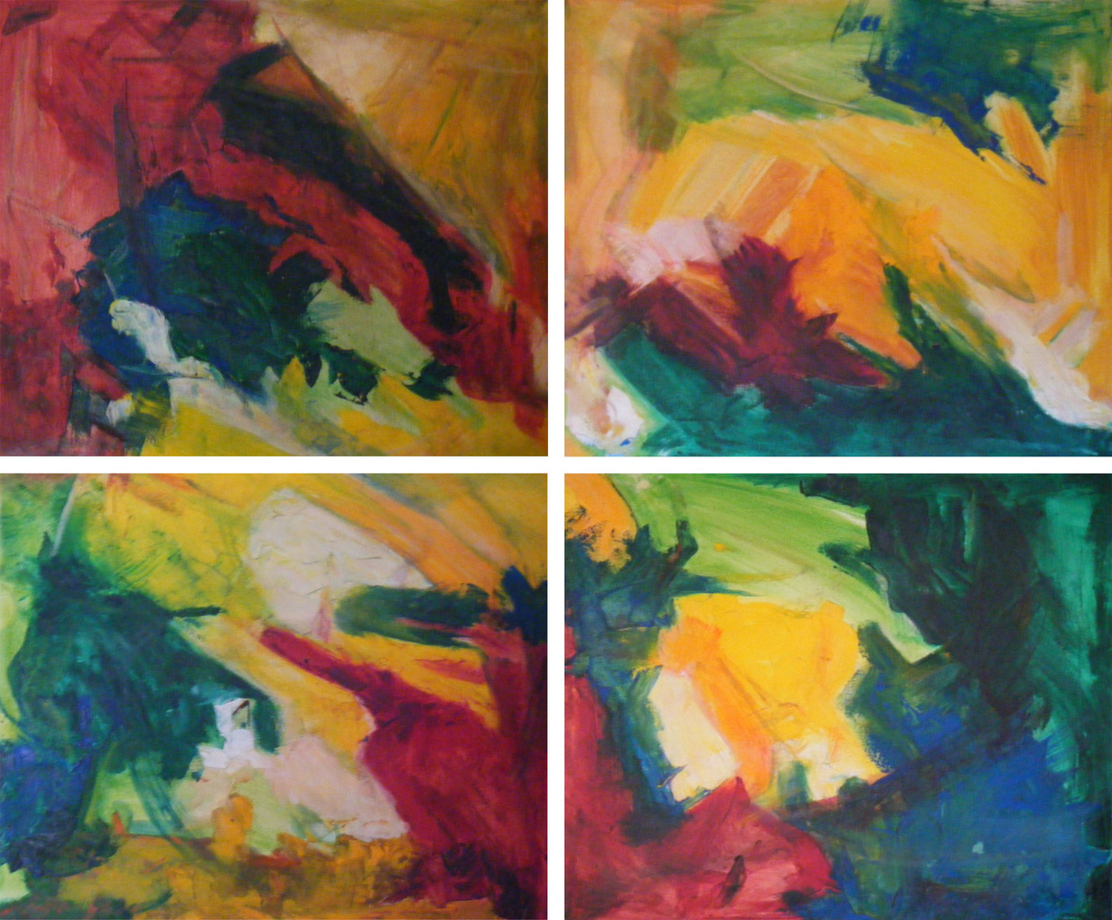 Olieverf op doek Vierluik; 4 doeken van ieder 50 x 60 cm.