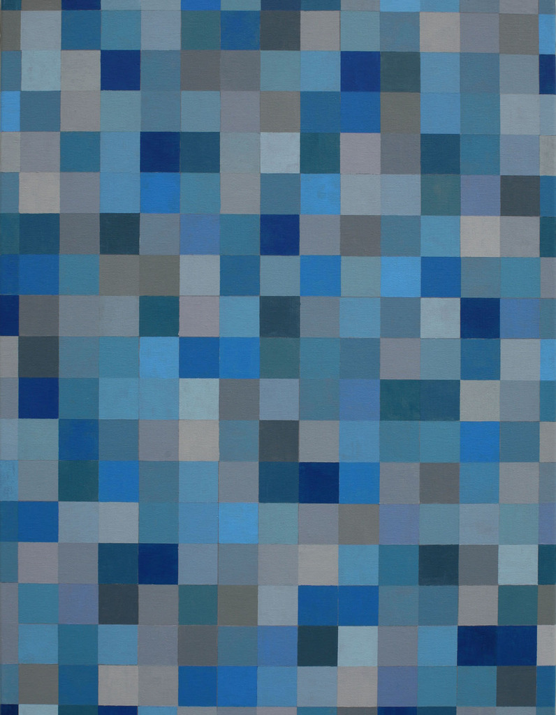 Vierde schilderij uit de rgb-grijze reeks. Nu gemengd met blauwen meer of minder wit.