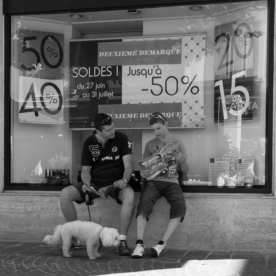 Wachtende Mannen, je komt ze overal tegen. Deze in Thonon les Bains (Frankrijk)