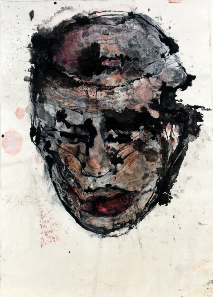Inkt, krijt en acrylverf op papier (ingelijst)