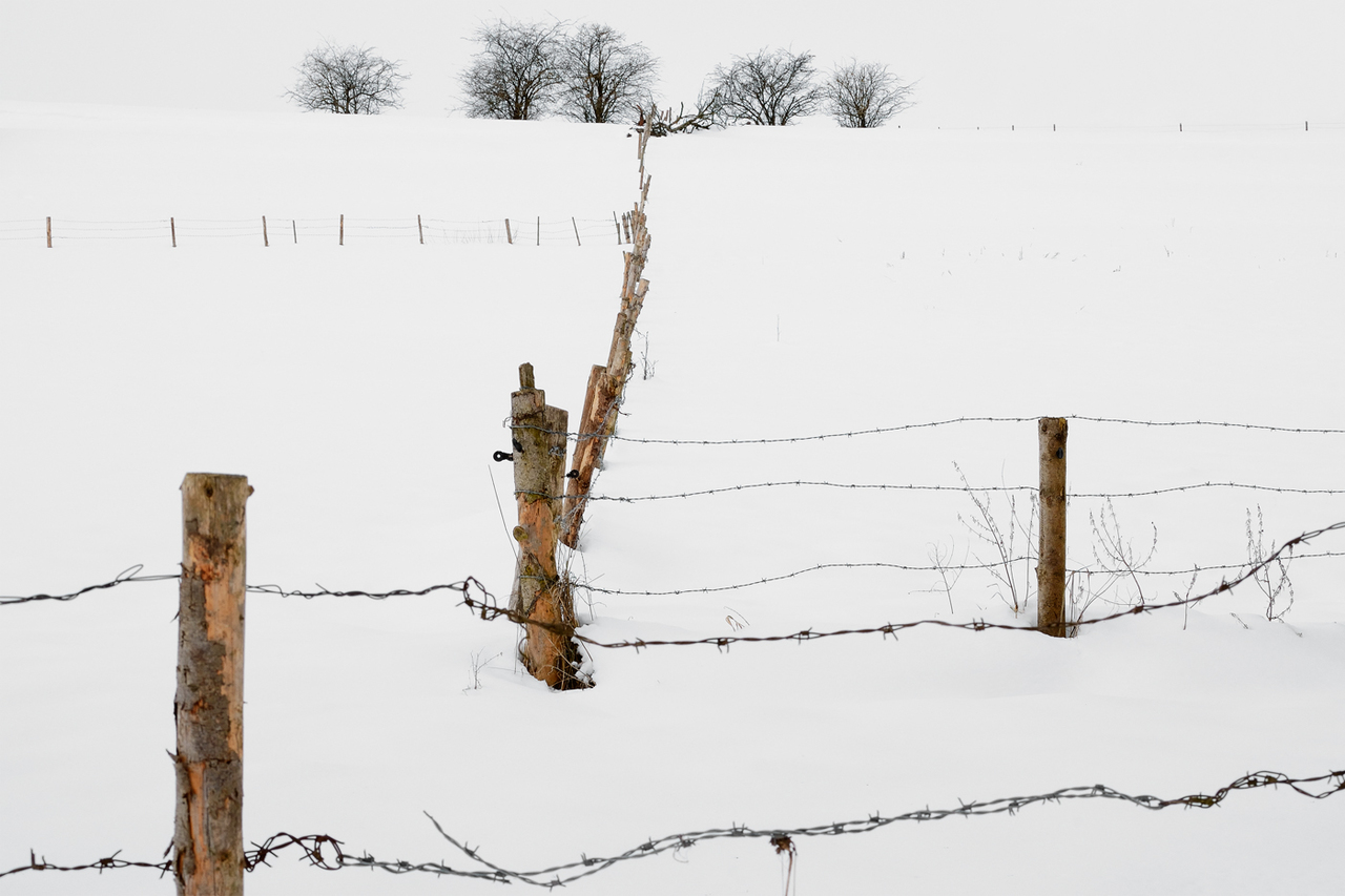 Sneeuw Bomen Winter Compositie Hek Prikkeldraad Duitsland Kunstschule Beieren Bomenfotografie Takt Geretsried Tanzschule