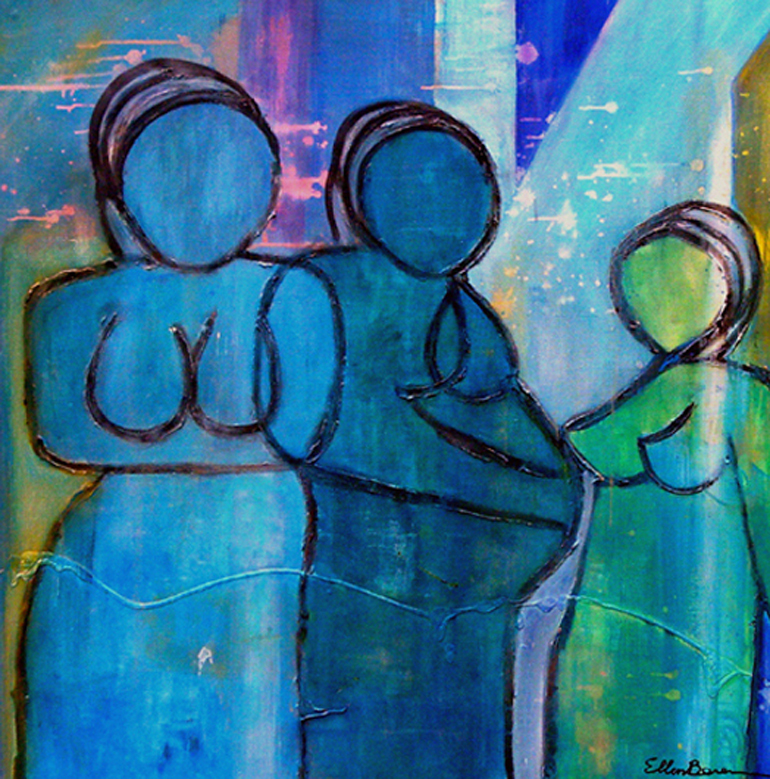 Ellen Berens (1960). Haar sterfelijkheid is wat haar bezighoudt in het leven, het gaat over vooruitgang door loslaten en anders denken en het erkennen van verliezen. Zij is een echte expressionist en staat voor het 'uitdrukken' van gevoelens. Ellen maakt met haar hoofd en handen wat er speelt in haar hart, na de diagnose ongeneeslijk kanker, dit is terug te zien in de schilderijen die ze maakt. Haar schilderijen hebben altijd meerdere lagen, zoals ook haar leven. Haar veelzijdigheid levert verrassende resultaten op. De combinatie van passie, articiteit en haar visie op het leven, maakt dat haar schilderijen symbolisch zijn met sprekende kleuren in harmonie met het onderwerp. Naast ervaringsdeskundige rond kanker is Ellen gediplomeerd in Creatieve therapie en Verlieskunde.