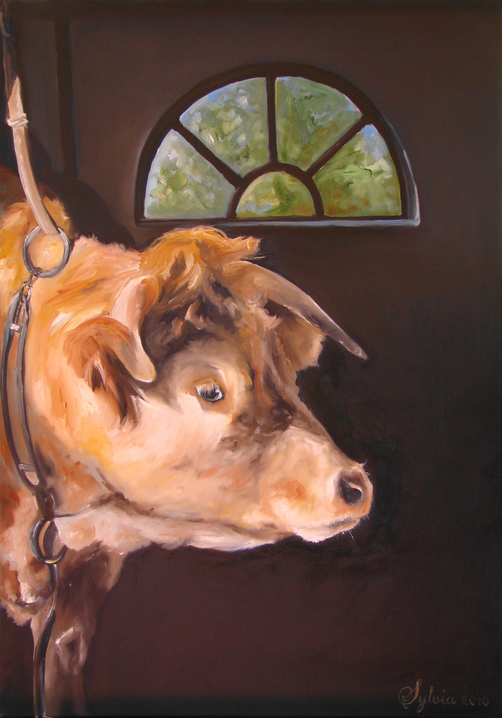 Stable Stal Zon Koe Cow Dutch Antiek Raam Sylvia Heeren Schilderen Met Passie Stier