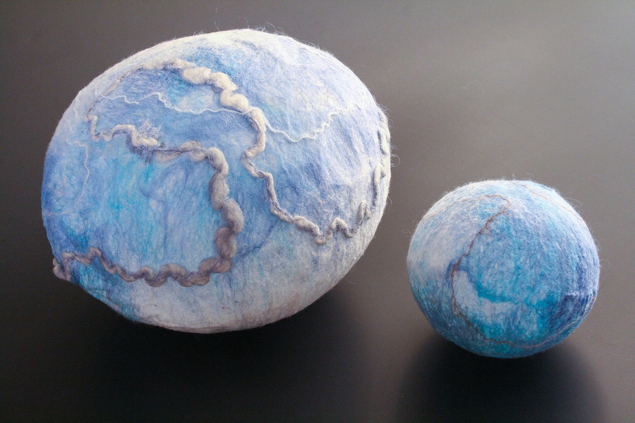 Wol Vilt Bol Expressief Spiritueel Elementen Blauw Wit Wool Felt Expressive Spiritual Elements Blue White