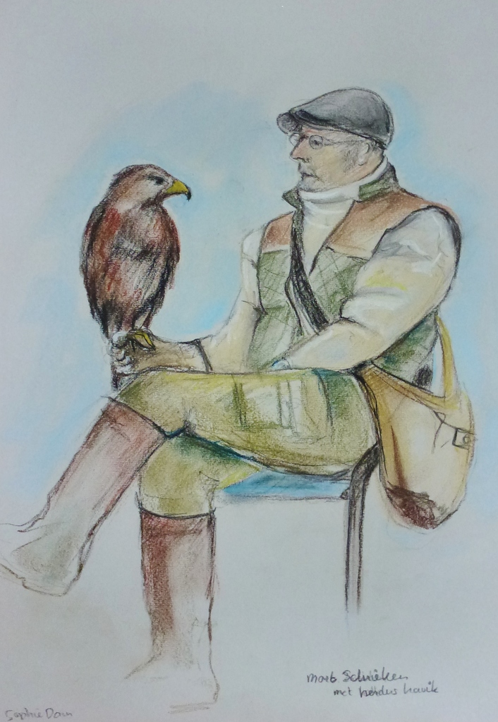 de heer Schrieken poseerde met een woestijnbuizerd