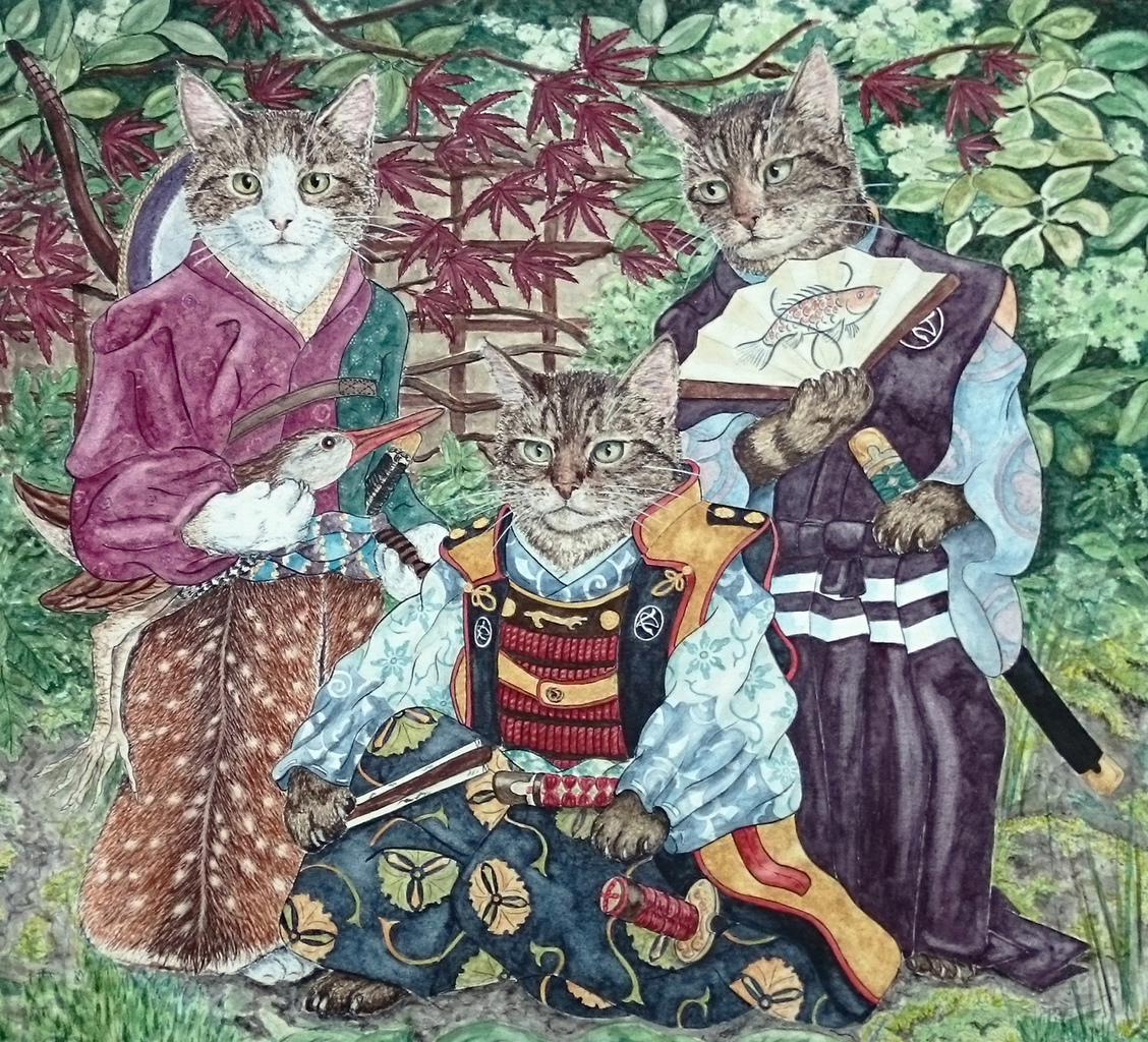Arie de Jong (Alkmaar, 1961) verbindt in haar werk haar passie voor katten met haar interesse voor de Japanse cultuur en (krijgs)geschiedenis.