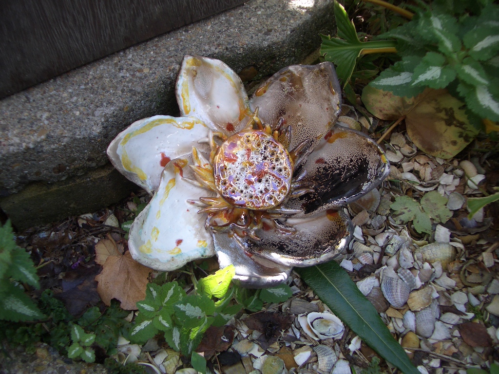 Lotusbloem in keramiek...handvorm....glazuur en rookstook.