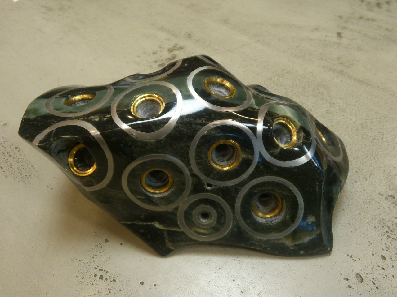 Spek steen ingelegd met 50/50 soldeer en messing ringen