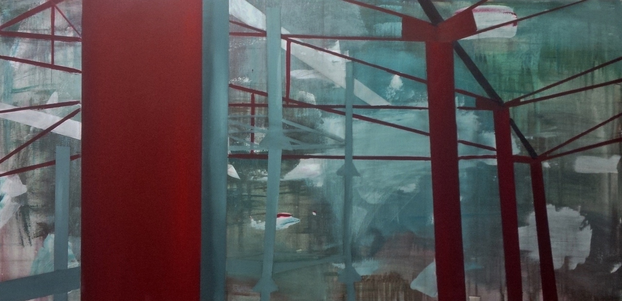 'OF' of 'Old Factory' waar ik het lijnenspel van de constructie van een oud bedrijfspand benadruk.