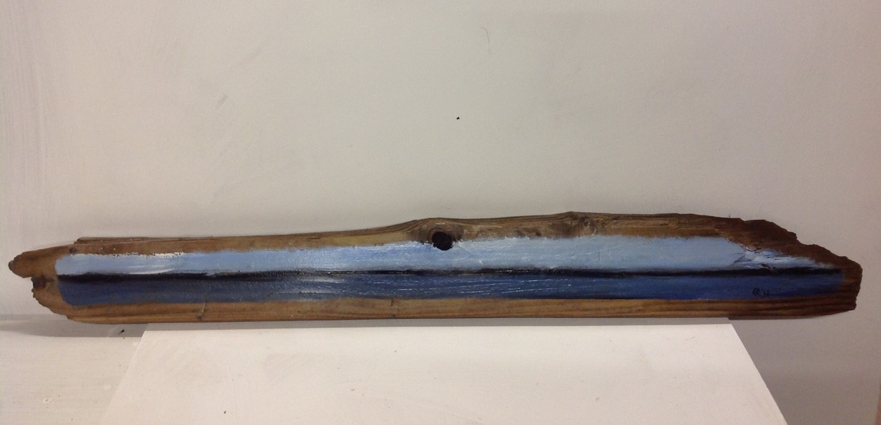 Zeeschildering op hout 15 x 80 x 2 cm.