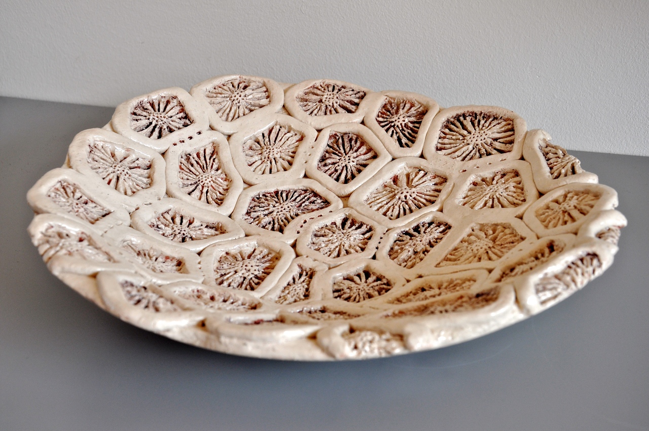 Schaal met repeterend patroon. De inspiratie voor het patroon is afkomstig van koraal uit Indonesie.