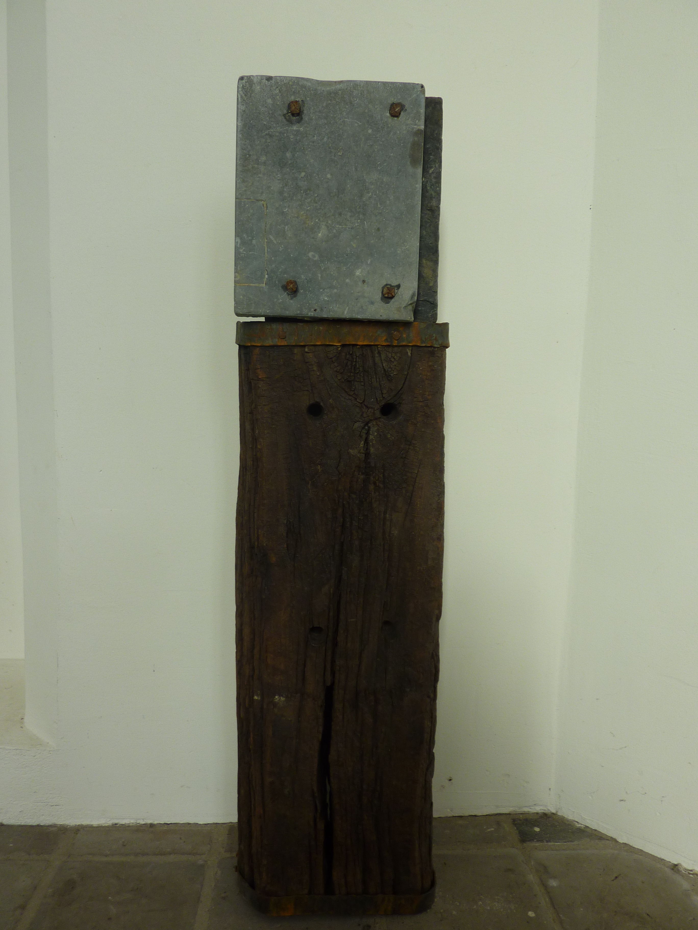 Een monument gemaakt van hardsteen en hout.