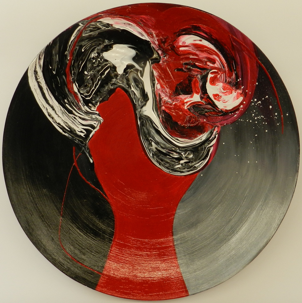 Kunstschaal abstract portret,uitgewerkt in acrylverf.
