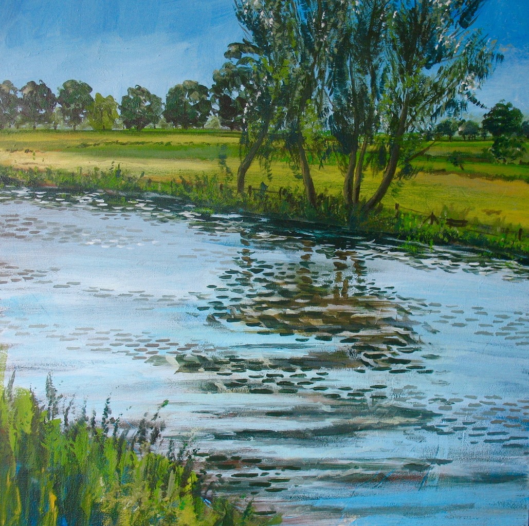 Prachtige bomen, stromend water bij Rhijnauwen. Ter plekke geschilderd.