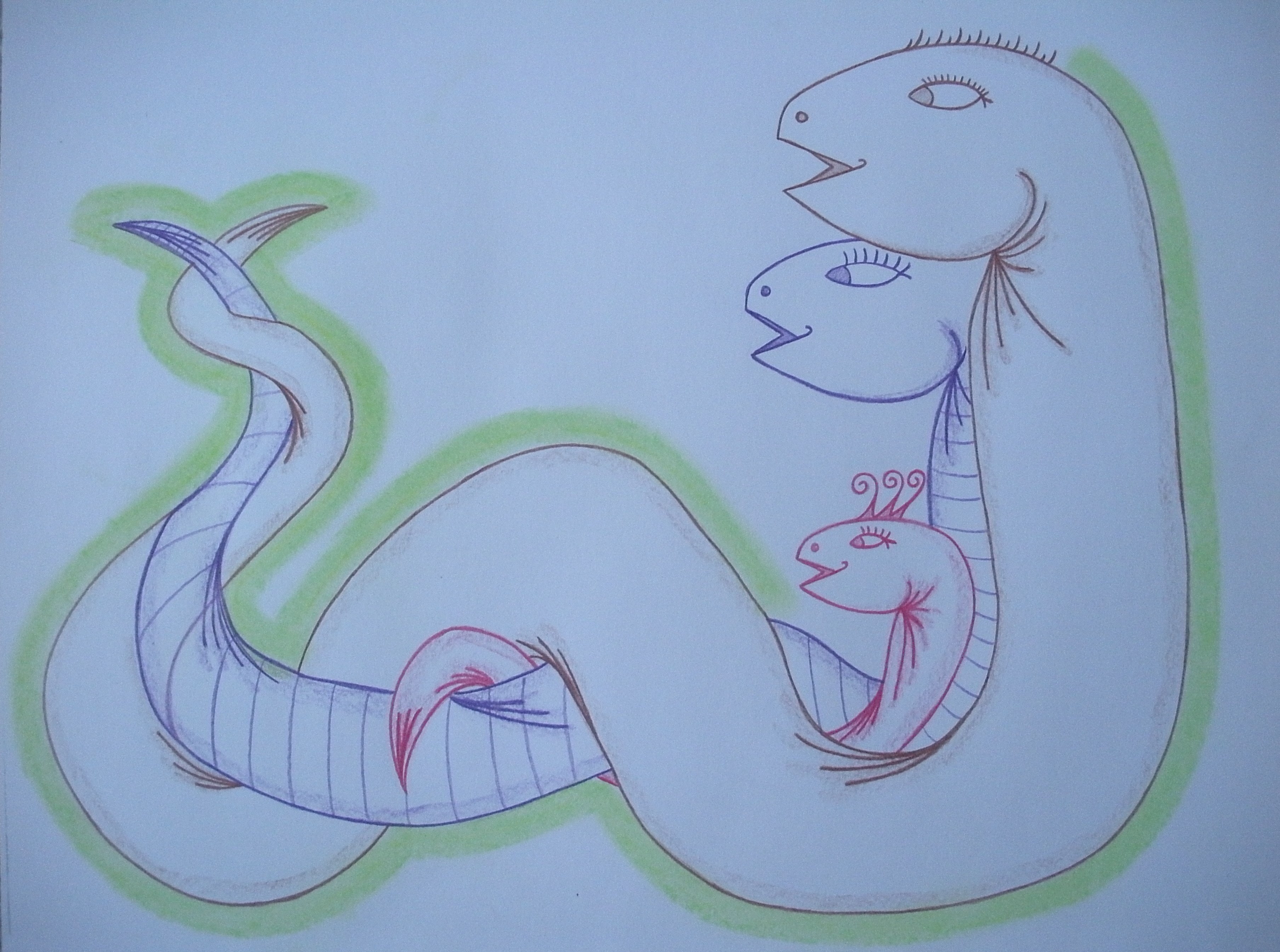 Ik werk intuïtief en maak wat mijn handen en gevoel me ingeven. Dat varieert van tekeningen, schilderijen, leemwerken, textielart, papiermache of gecombineerde technieken. Bij mijn werken zet ik veelal de materiaalkosten en laat het aan de koper over wat hij of zij hiervoor over heeft.