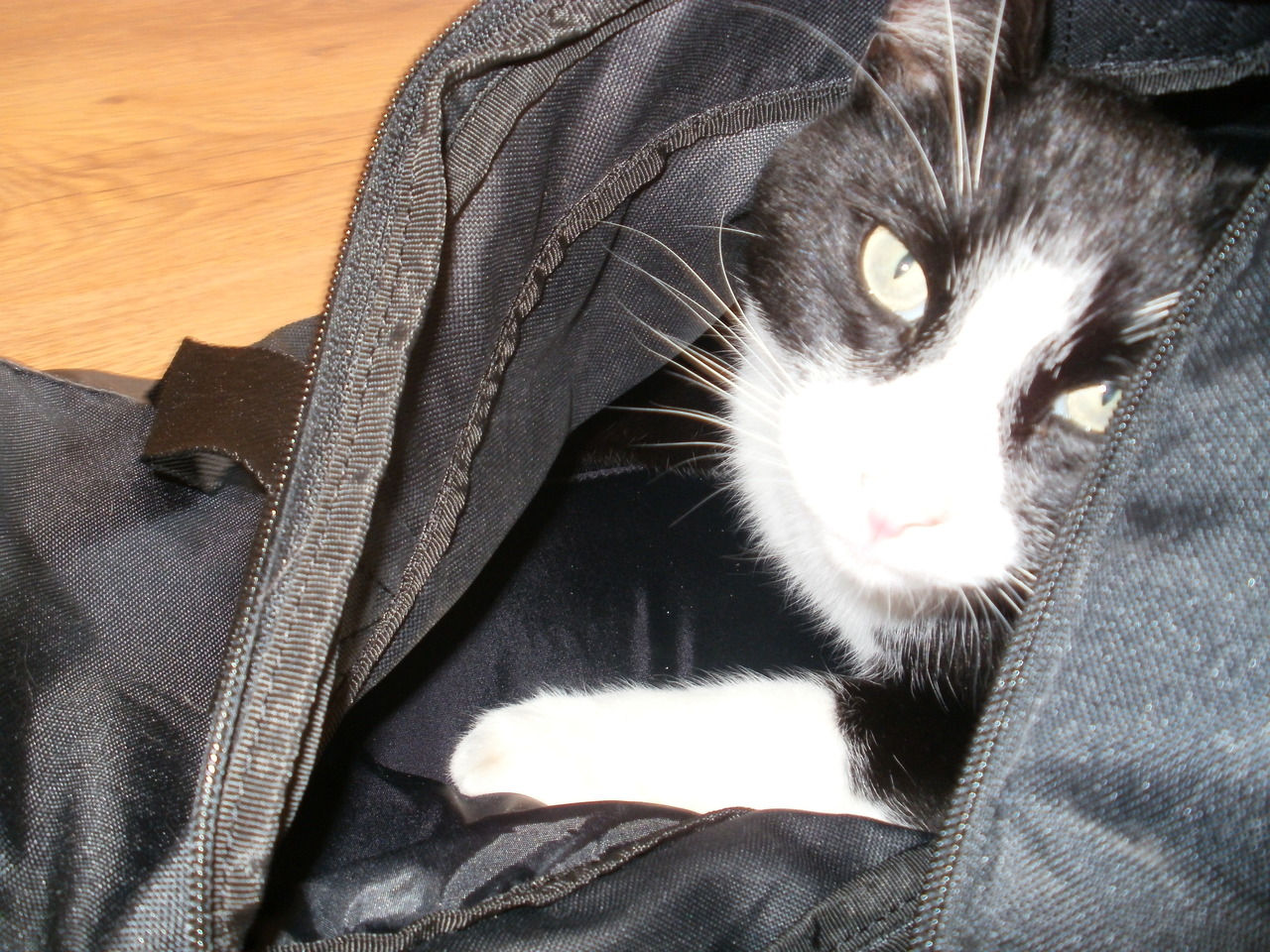 Onze kater die stiekem in mijn sporttas is gaan liggen.