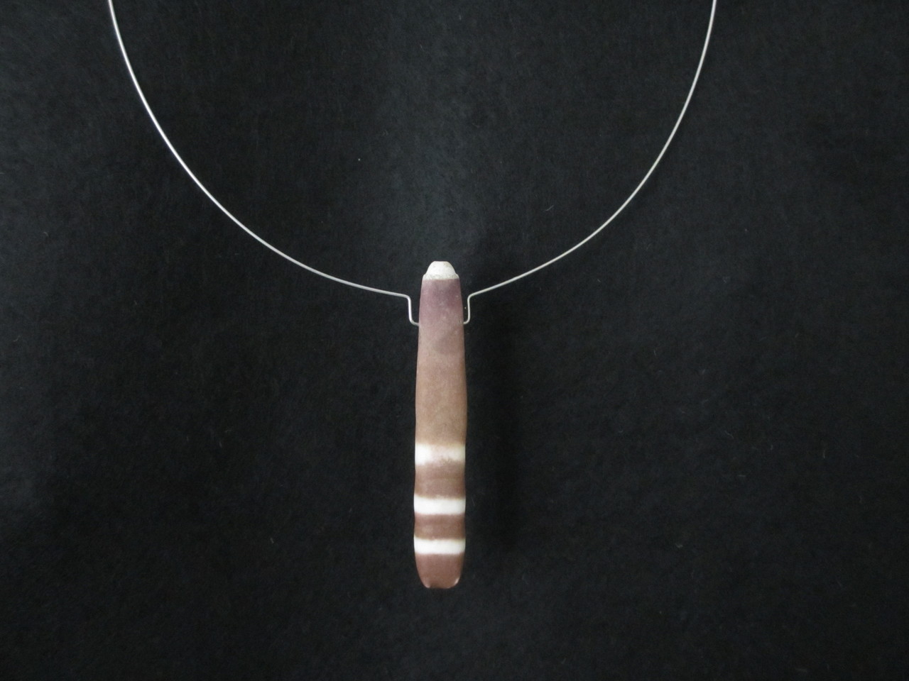 Elke zee-egel stekel is uniek. Kleuren verschillen en soms hebben ze zomaar, uit het niets, een decoratie. In dit geval drie symmetrische cirkels. Om alle aandacht daarop te vestigen hebben we het sieraad naturel gehouden. Een vormvast spang van RVS die zo gevormd is dat het sieraad altijd in het midden hangt. Meer niet.