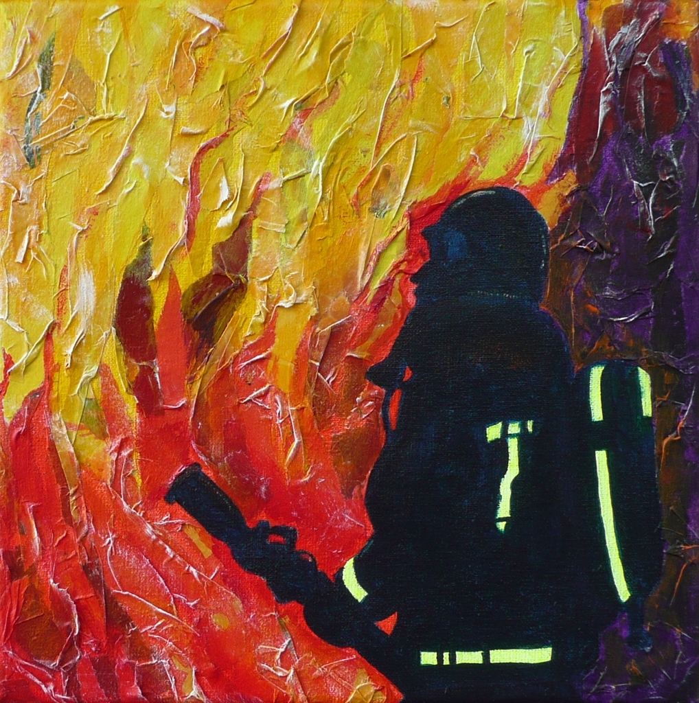 Op 4 cm dik doek, acrylverf in combinatie met collage. Prints op o.a. canvas te koop via http://fineartamerica.com/featured/firefighter-lida-bruinen.html