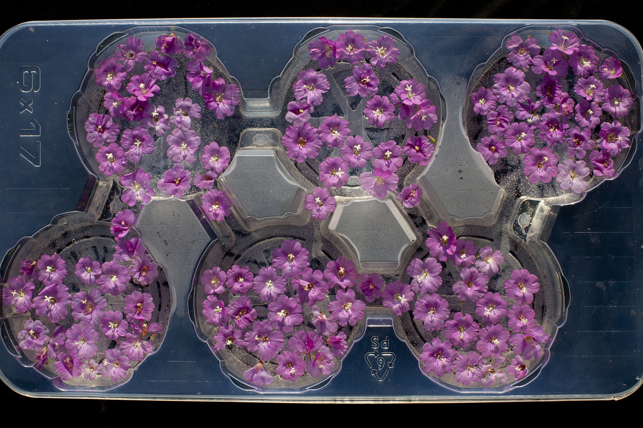 bloemstilleven van wilgenroosjes in tray voor bloemen en planten