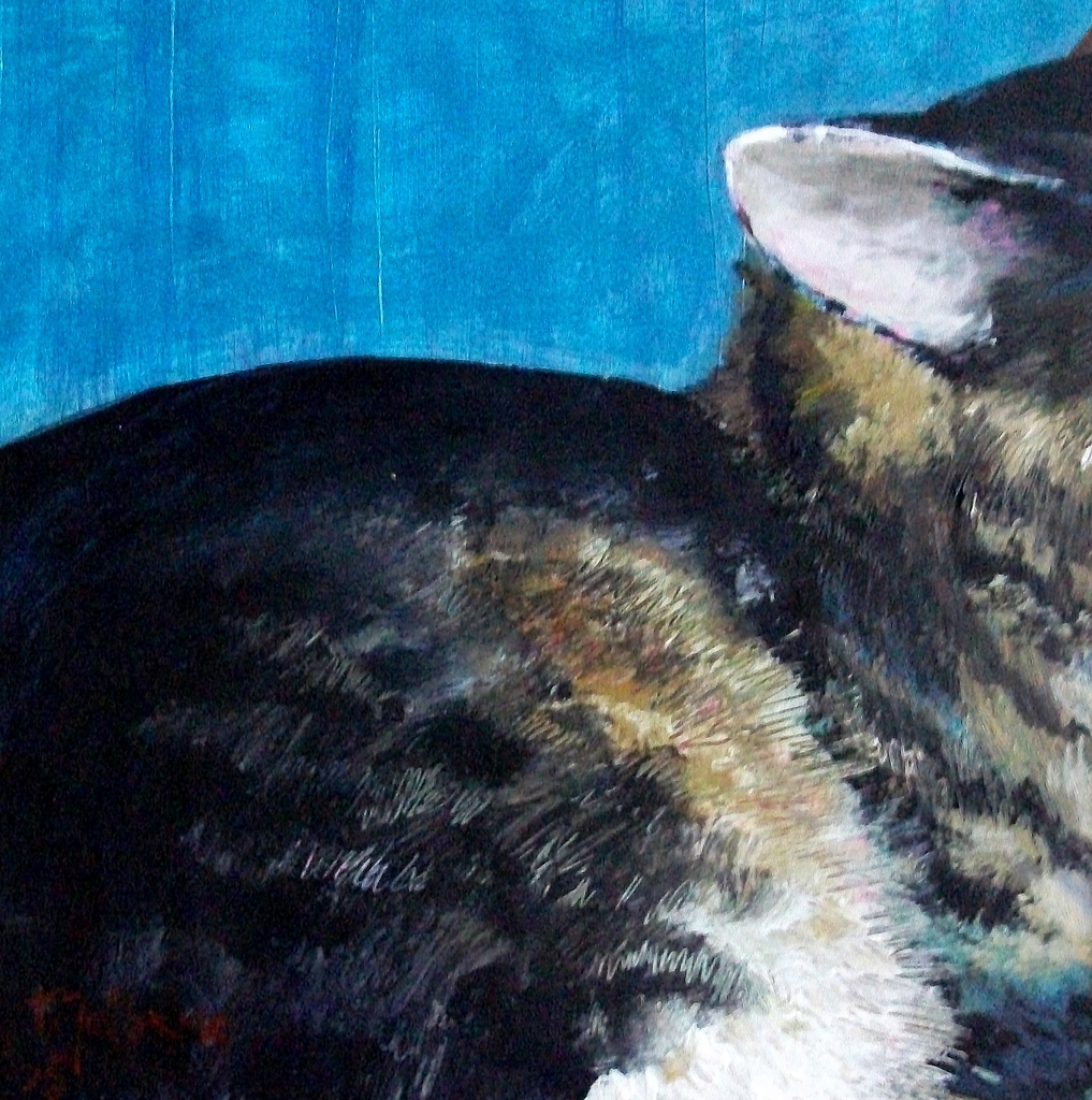 Ik schilder op een (sur)realistische wijze, vaak met een verborgen boodschap. Met acrylverf lukt het me het intrigerende van de mensen, dieren en dingen om me heen vast te leggen.