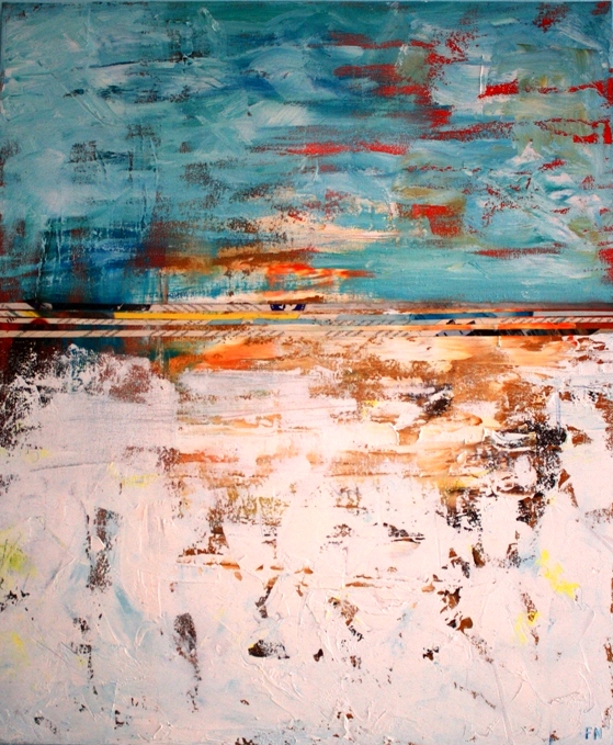 Wat zie jij achter de horizon? Olieverf en mixed media op doek