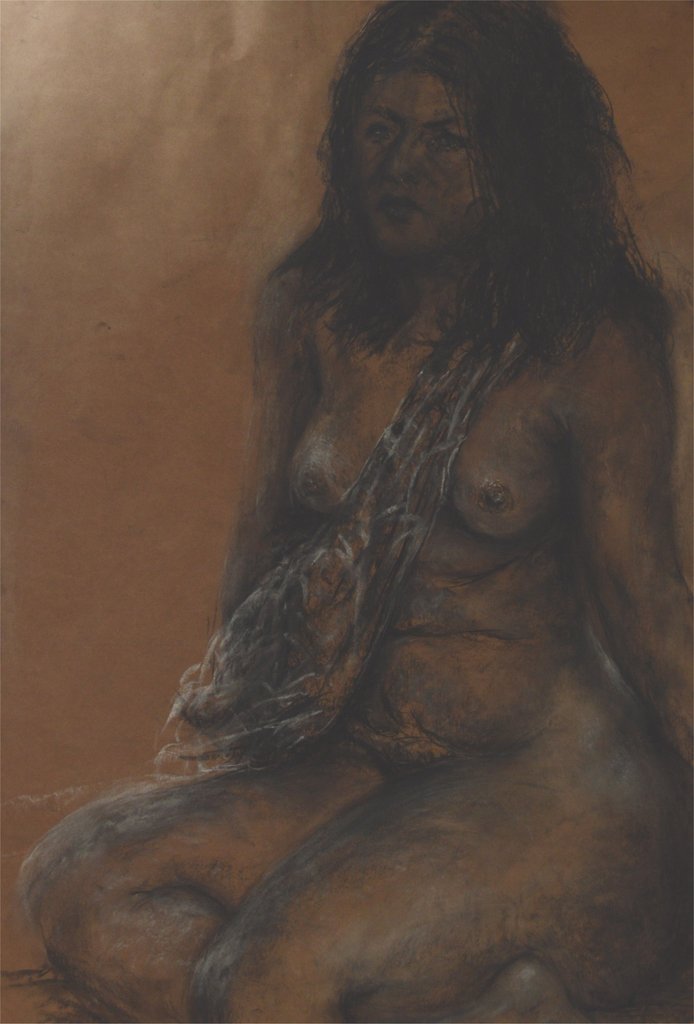 naar model getekend met houtskool en krijt op karton