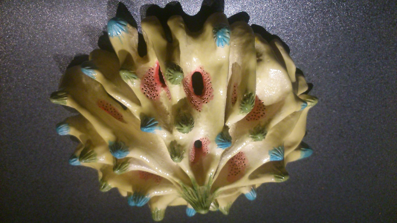 Een combinatie van keramiek en mandala: een rond object met enige diepte.