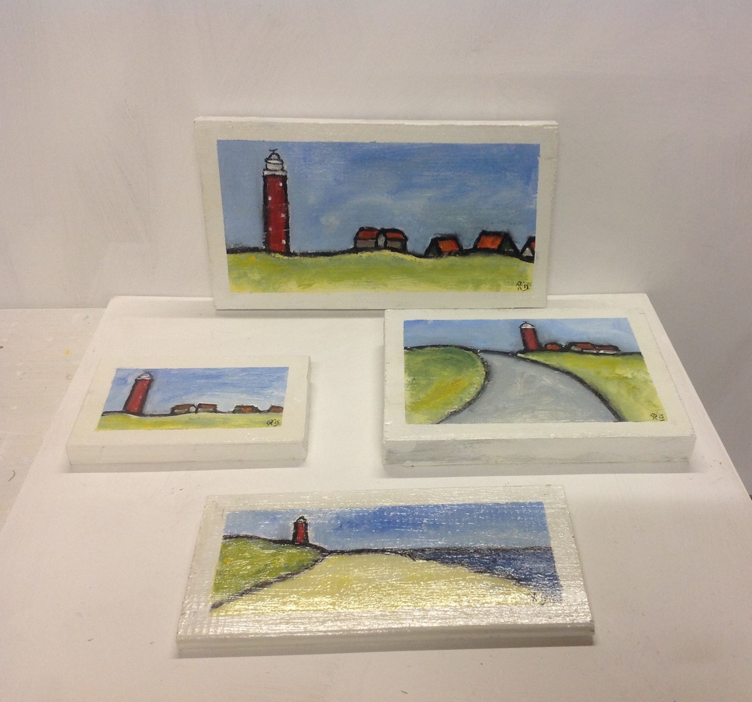 Divers vuurtorenwerk. Vuurtoren Texel. Schildering op hout. Los te koop. VERKOCHT.