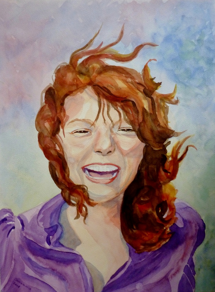 Oranje Paars Bruin Huidkleur Portret Vrouw Aquarel Lachen