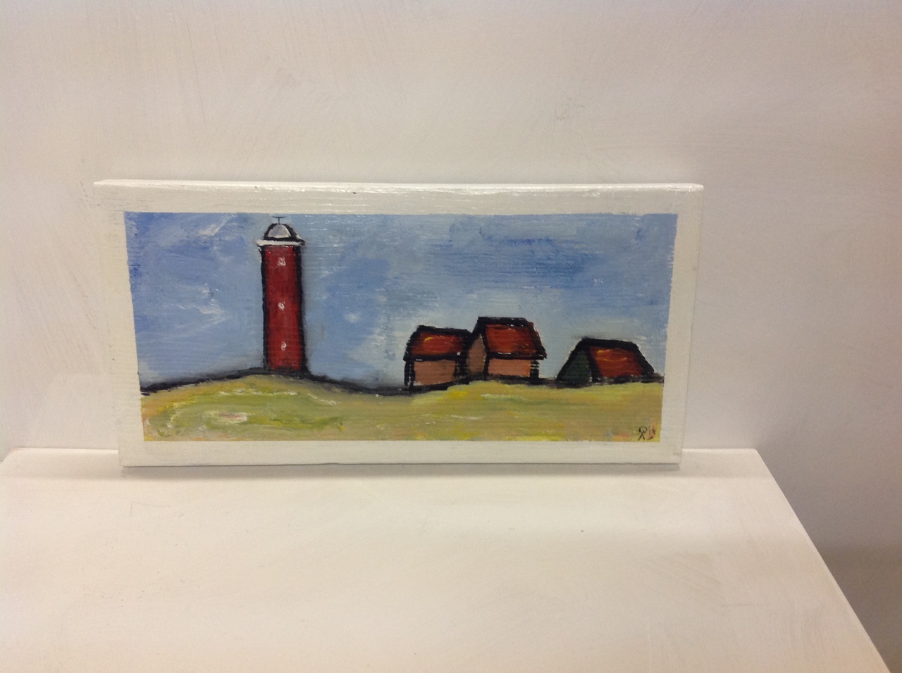 Schildering op hout. Dicht bij het vuur. 20 x 40 x 2 cm. VERKOCHT.