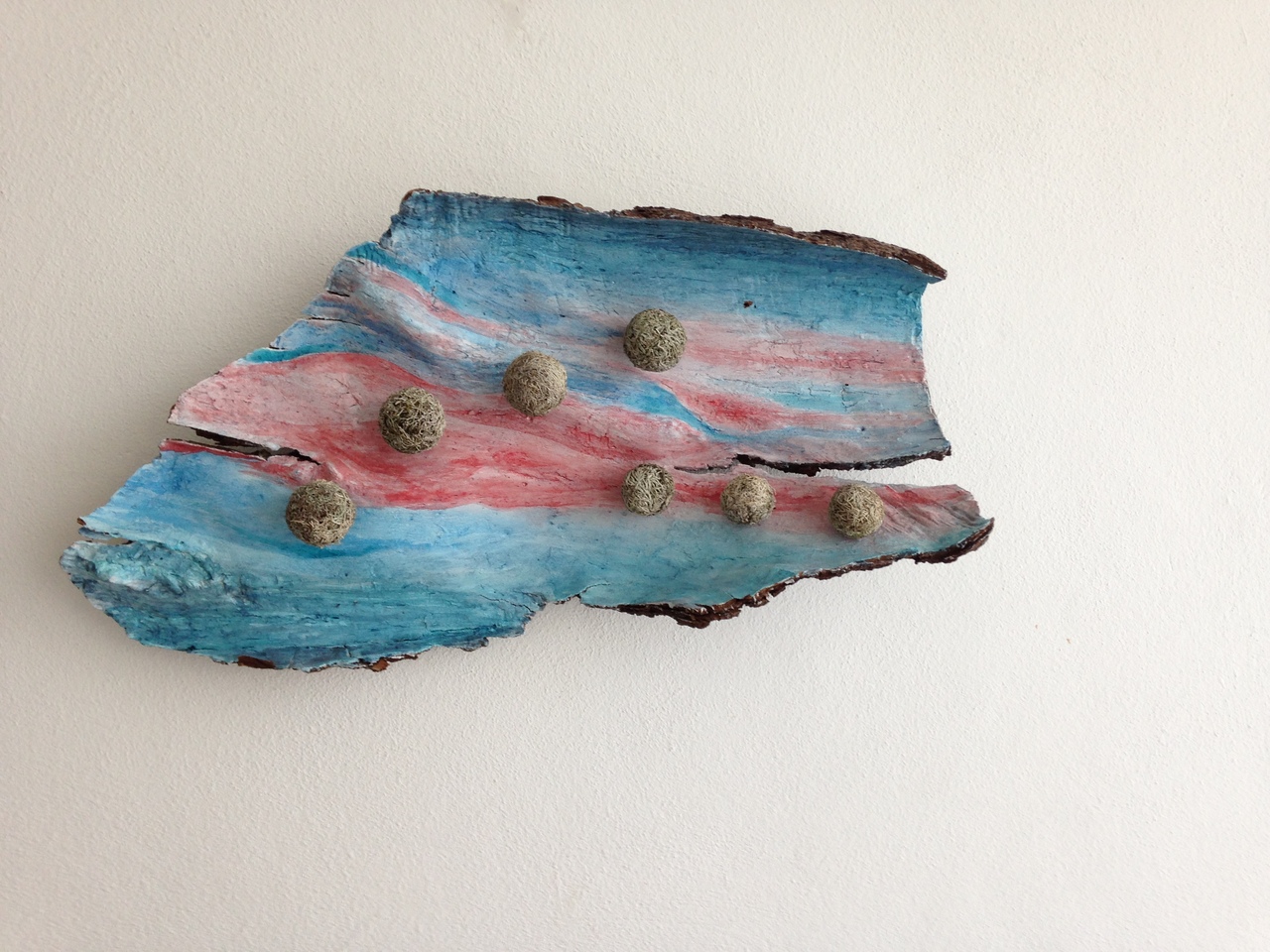 boomschors van populier met natuurlijk indigo en bolltjes van mos.