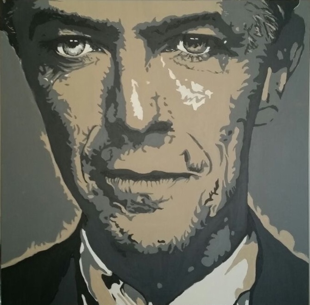 "Bowie heroes" een popart schilderij in grillige lijnen op doek gezet waar door het een indrukwekkende uitstraling krijgt. In de Stijl van Bowie grillig en Mooi