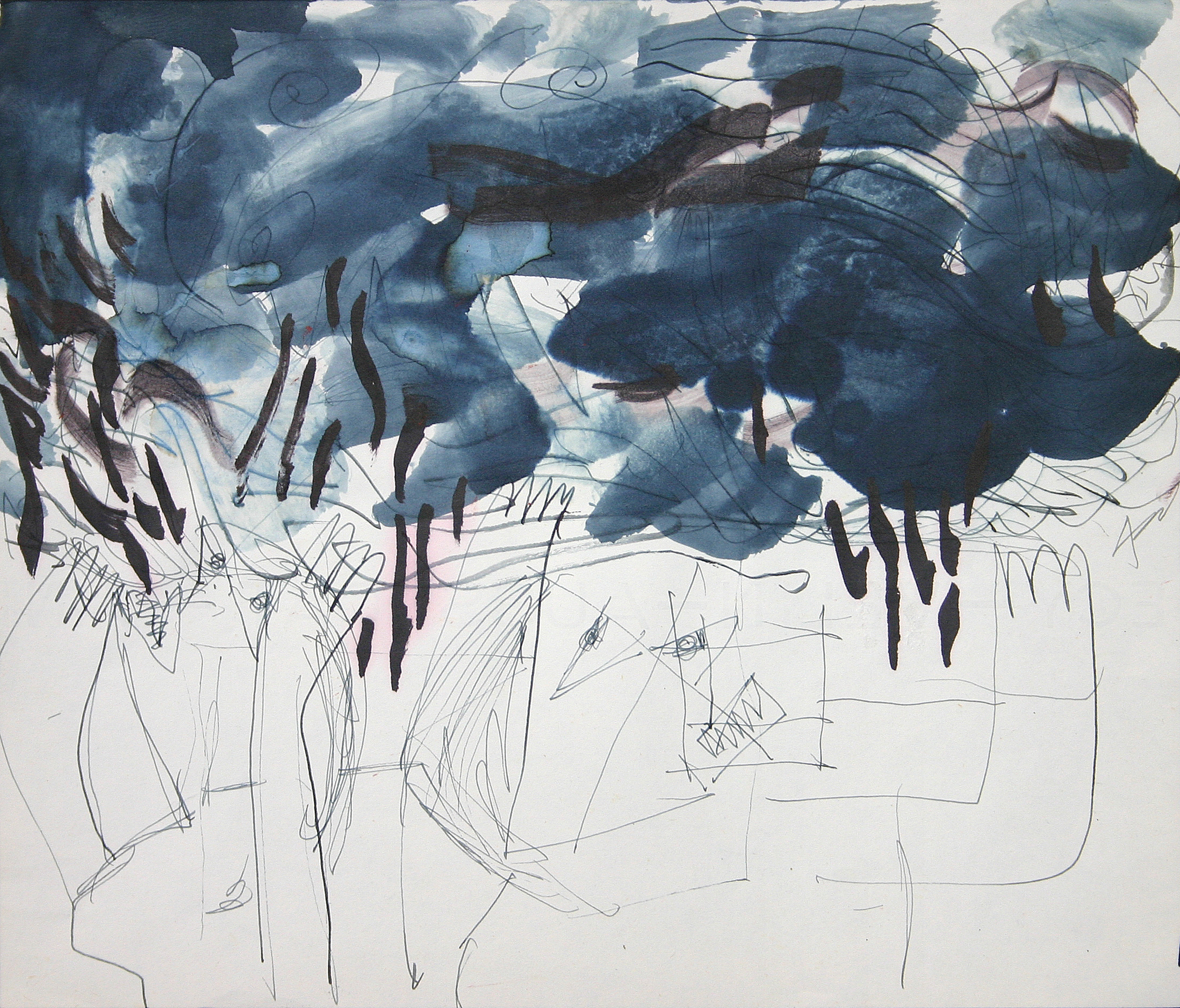 voor de zondvloed: 40 dagen storm en zware regen (marker, pen en inkt op papier)