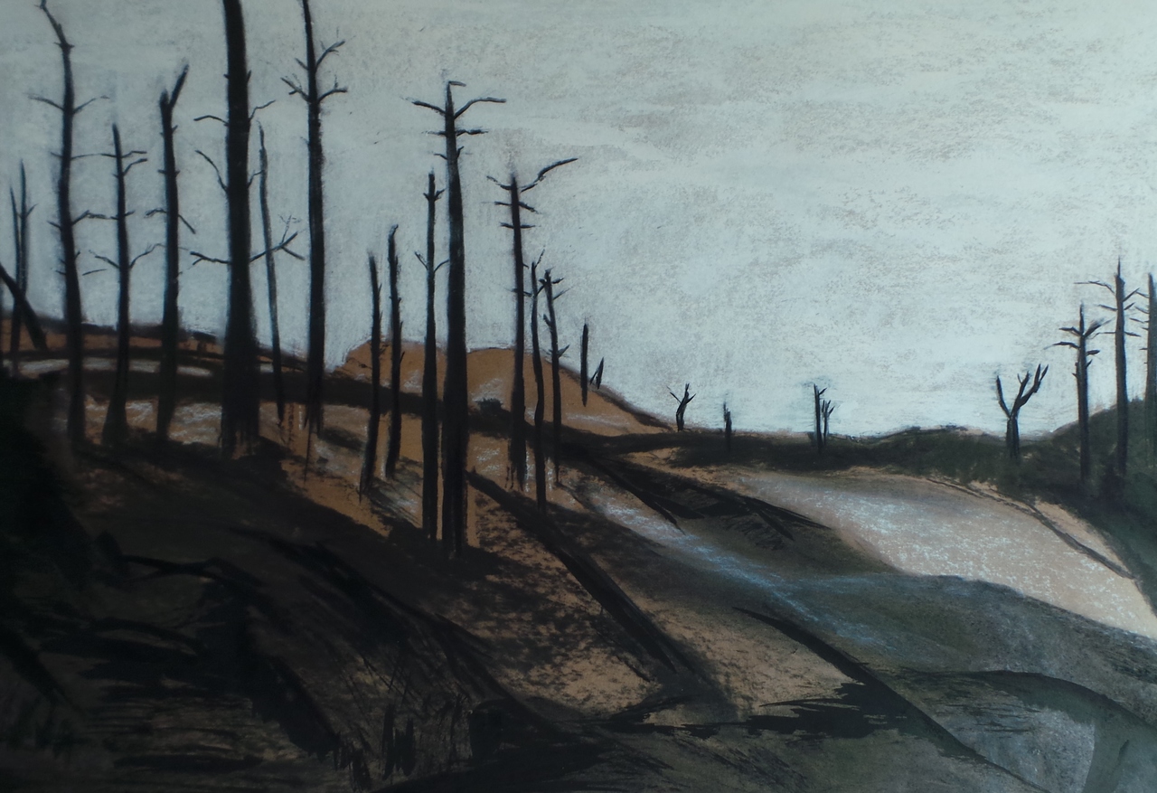 Wit Zwart Bomen Pastel Houtskool Inkt Kraftpapier