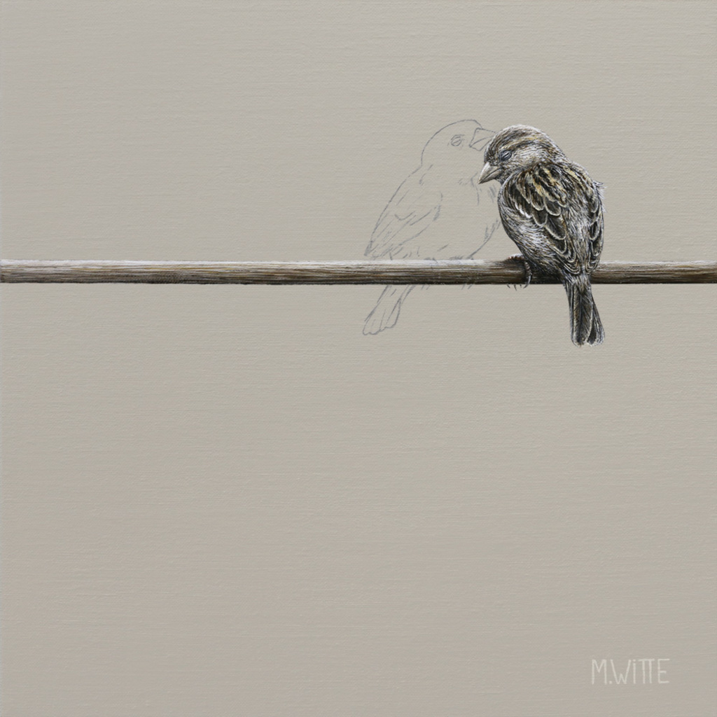 Marcel Witte is een visuele verhalenverteller die de hedendaagse maatschappij subtiel bekritiseert. Zijn schilderijen van dieren tegen een lege achtergrond balanceren tussen realisme en fantasie.