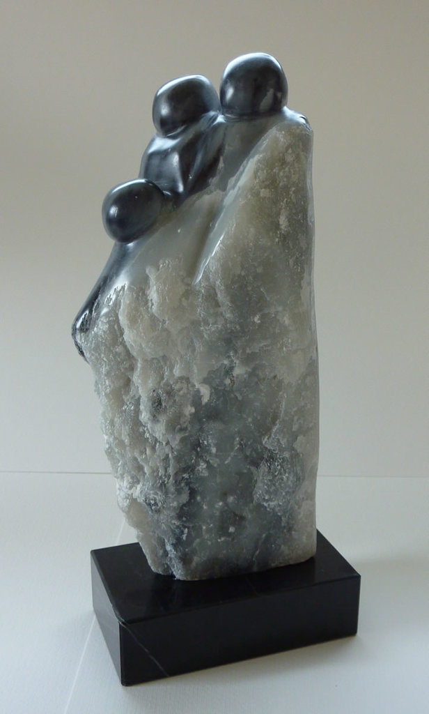 Dit zwart-witte speksteen bracht een bijzondere kleurschakering voort, paste heel goed bij het onderwerp dat ik wilde maken; gezin, hechte groep mensen