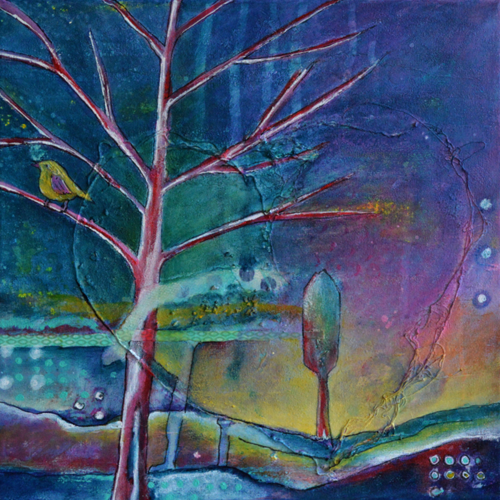 Landschap Acryl Vogel Mixed Media Natuur Boom Verf