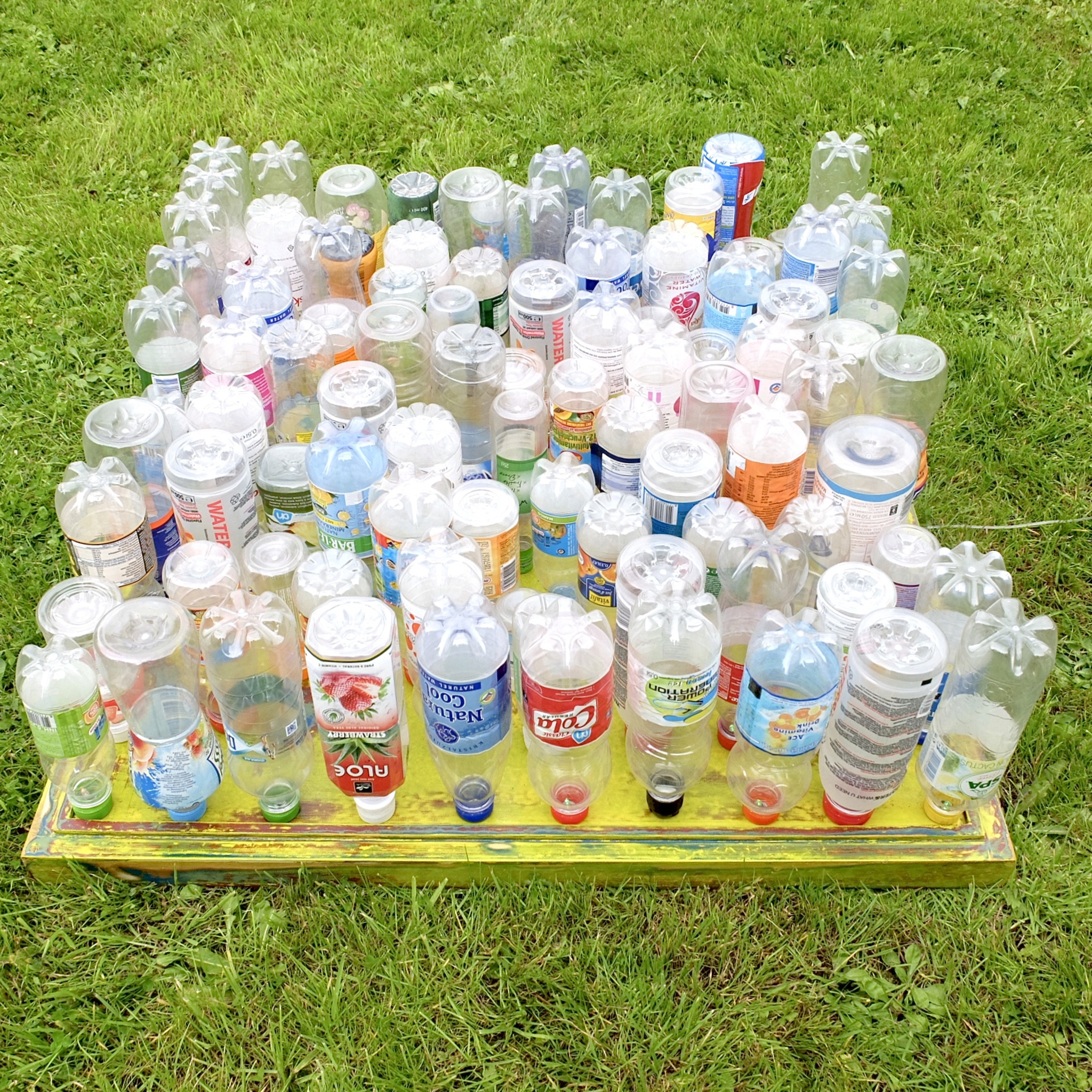 De grondstoffen raken op. Veel gebruikte materialen worden afgedankt als afval en zwerven rond in de natuur en in de leefomgeving van mens en dier. Voorbeelden hiervan zijn de plasticsoep in de oceanen en de PET-flesjes van frisdrank die overal worden achtergelaten. De (weggooi) flesjes die gevonden zijn op de Street, zijn nu gebruikt tot een kunstwerk. Bijna 100 petflesje zijn bevestigd als een waaiervorm op een gerecyclede houtenplaat en mooi afgewerkt en heeft de afmeting van 80 x 80 cm. In de PET-flesjes zijn LED lampjes gebruikt en kunnen op 7 verschillende manieren lichtgeven.