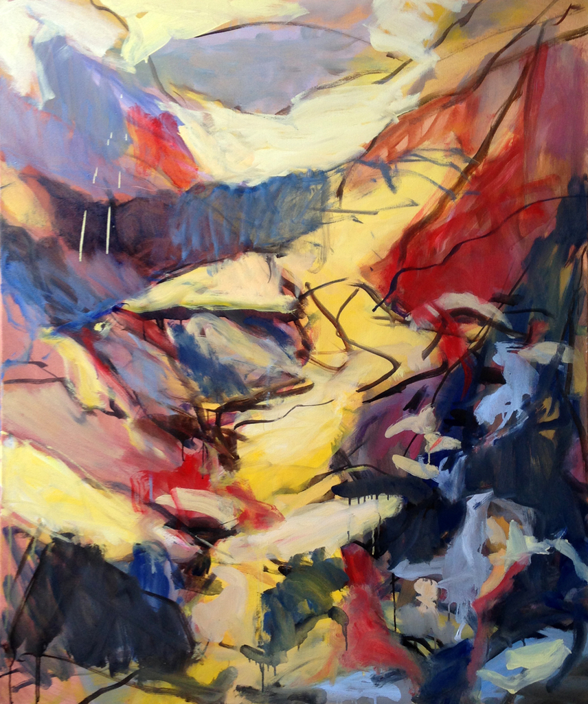 Schilderen raakt mijn ziel en lokt die. Hij (of zij?)kan zich manifesteren door verf in vorm, kleur, beweging. En de ziel wil zich graag laten zien. Voor mij is altijd beleving het voertuig. Ik ben niet persé bezig met vorm of kleur maar met beleving. ‘Toelaten’ en ‘Meestromen’ zijn belangrijke woorden.