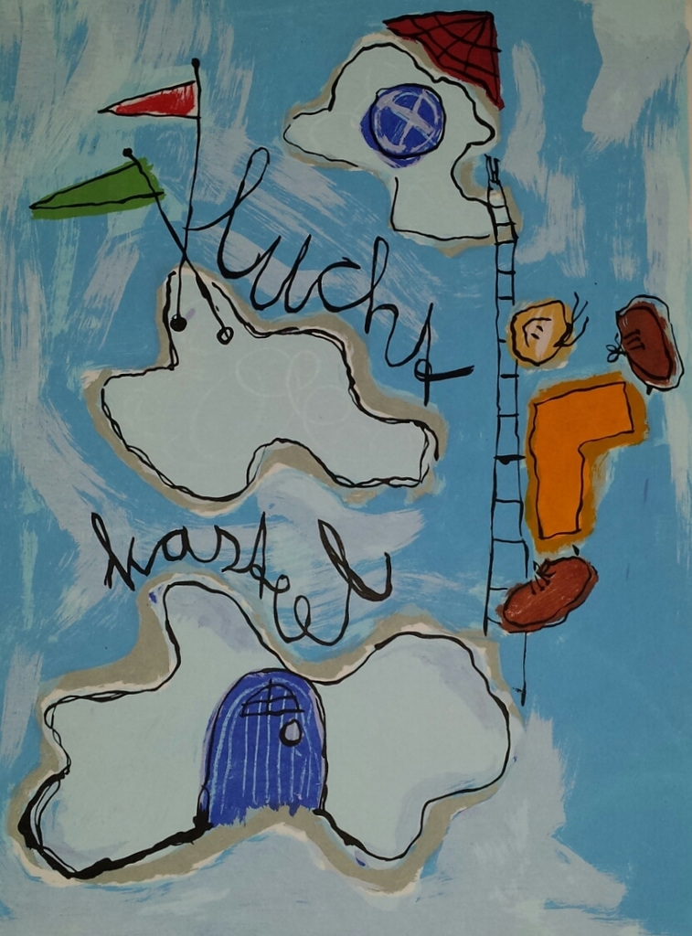 landschappen. Poëtisch maar ook vervreemdend. Met humor en onverwachte wendingen. De kern van de compositie wordt gevormd door grote vormen met een krachtige uitstraling , toegevoegd worden kleine details waardoor je al lopend door het schilderlandschap stuit op onverwachte ontdekkingen.