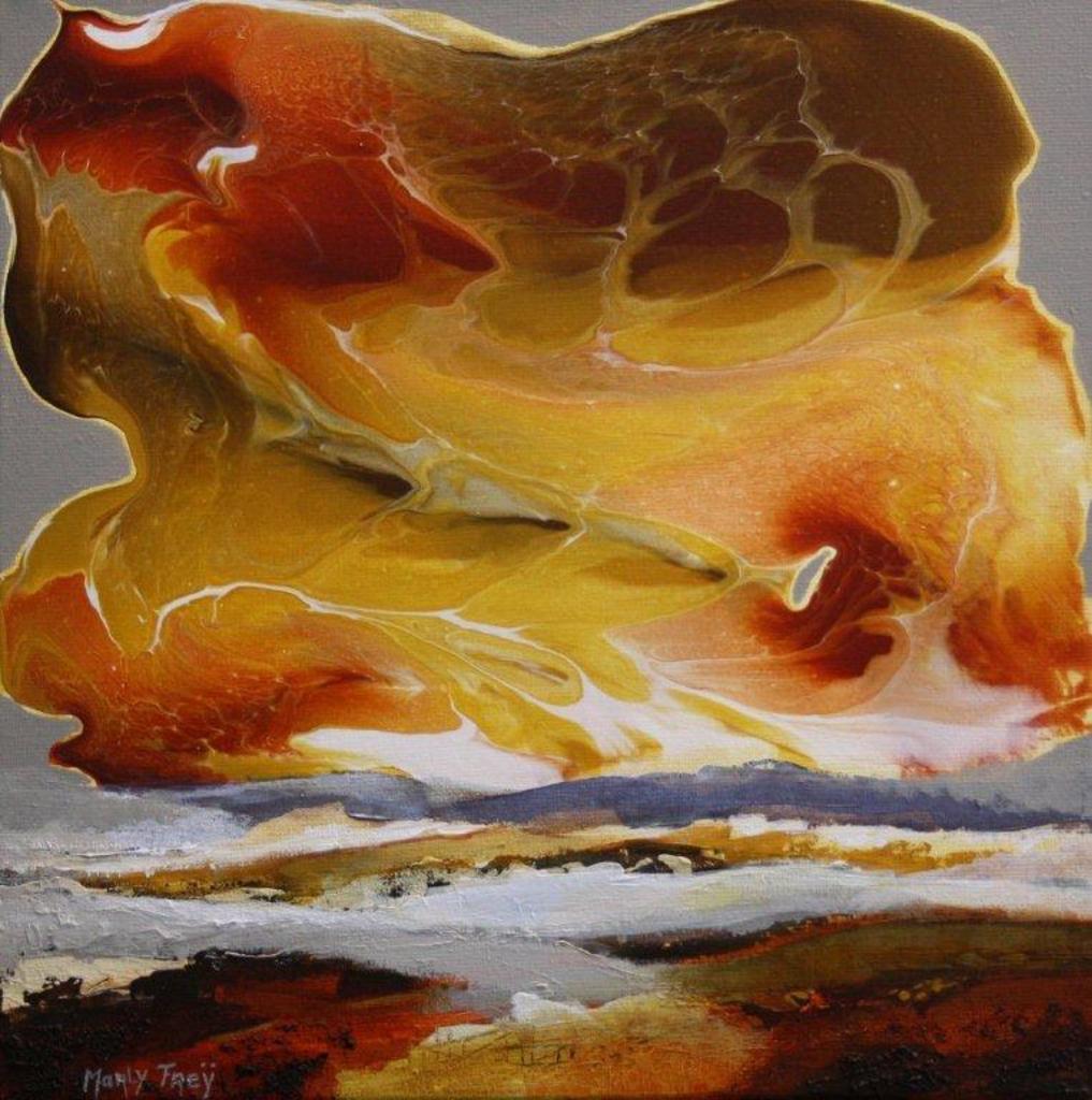 Marly Freij maakt grote kleurrijke, maar ook meer ingetogen schilderijen in gemengde techniek, met name sferische landschappen en abstracte composities