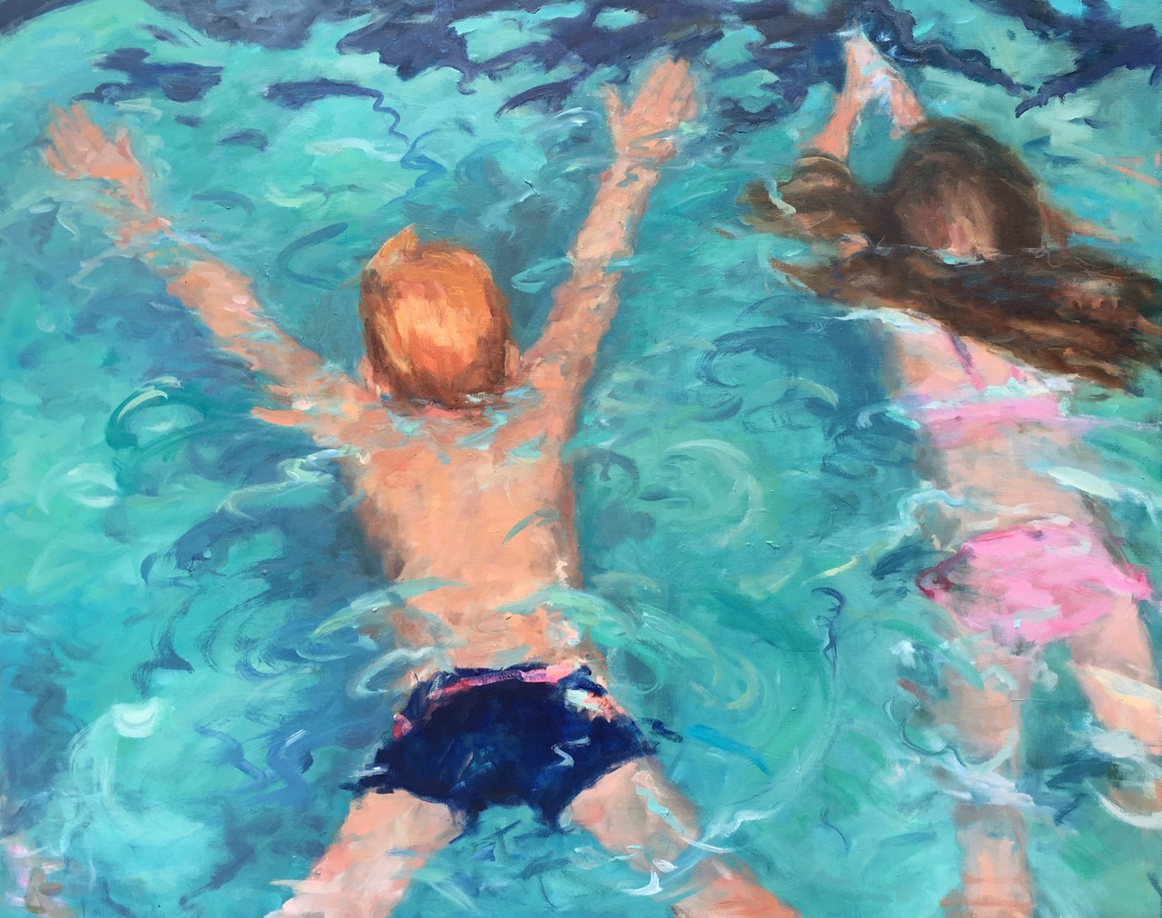 Schilderij Blauw Water Licht Olieverf Kinderen Zwemmen Prinsen Yvonne
